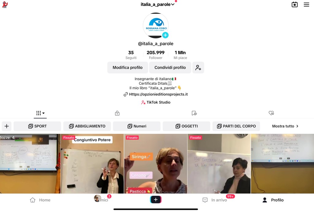 Anni fa mia figlia ha creato il canale tik tok Italia_a_parole nel quale ogni giorno pubblico video e live di lezioni di Italiano.