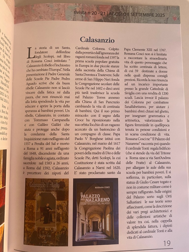Il mio ultimo libro è stato Calasanzio il Ribelle, che ho persino regalato a Papa Francesco.